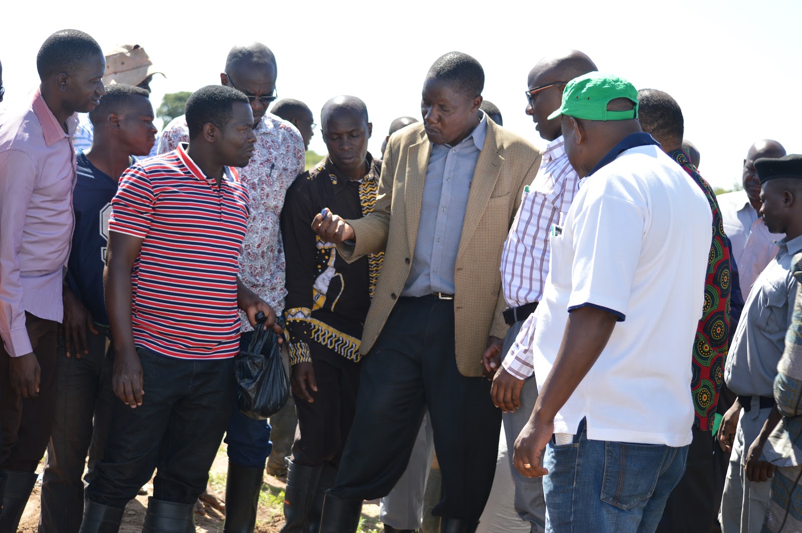 | Afisa Kilimo wa halmashauri ya mji,Bw Samwel Ng'wandu akitoa maelezo kwa Mkuu wa Mkoa wa Geita pamoja na mwenyekiti wa halmashauri ya mji wa Geita,Leornad Kiganga. |